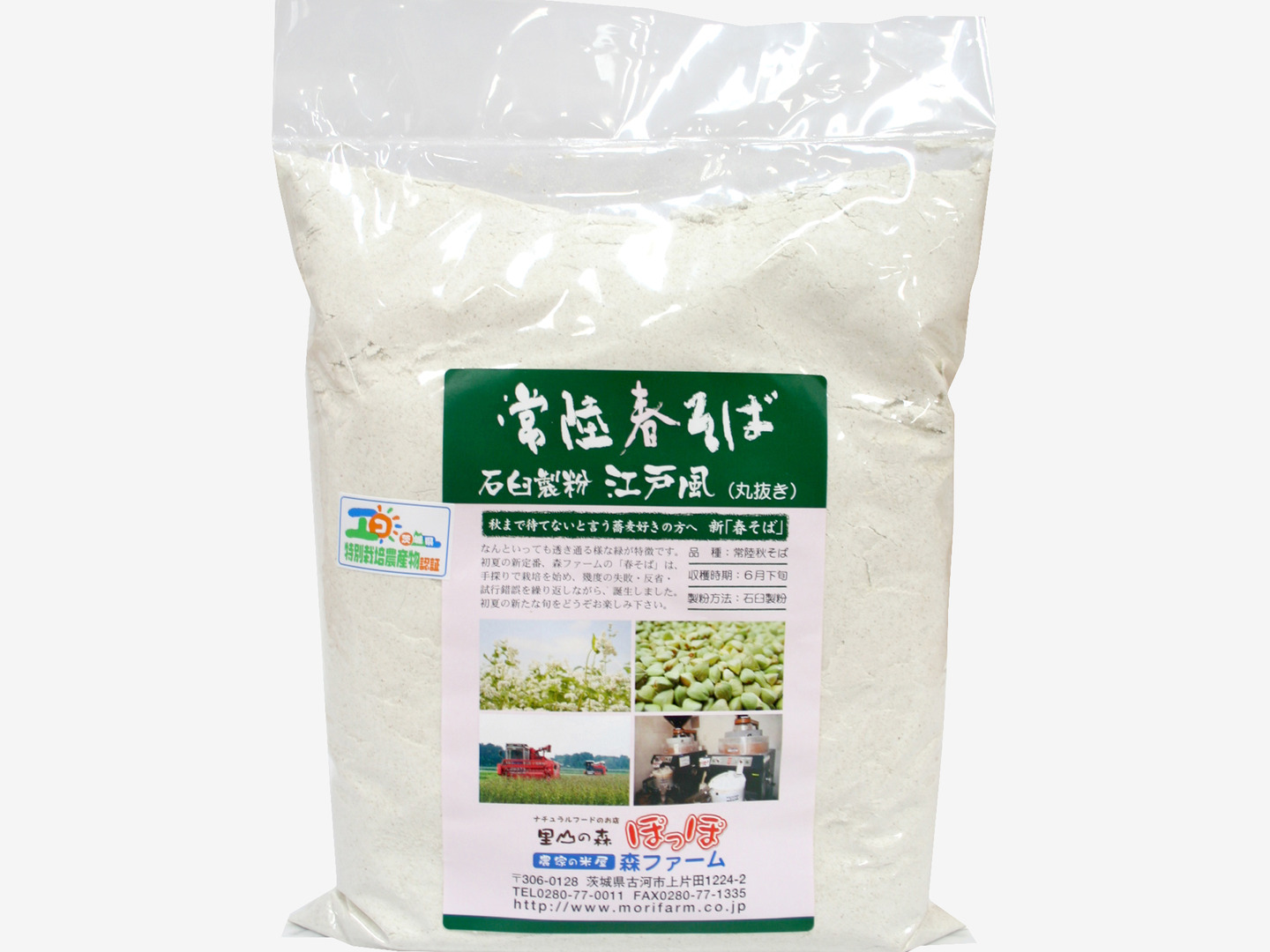 石臼製粉 常陸春そば(品種:常陸秋そば) 江戸風(丸抜き・薄緑色)そば粉 1kg