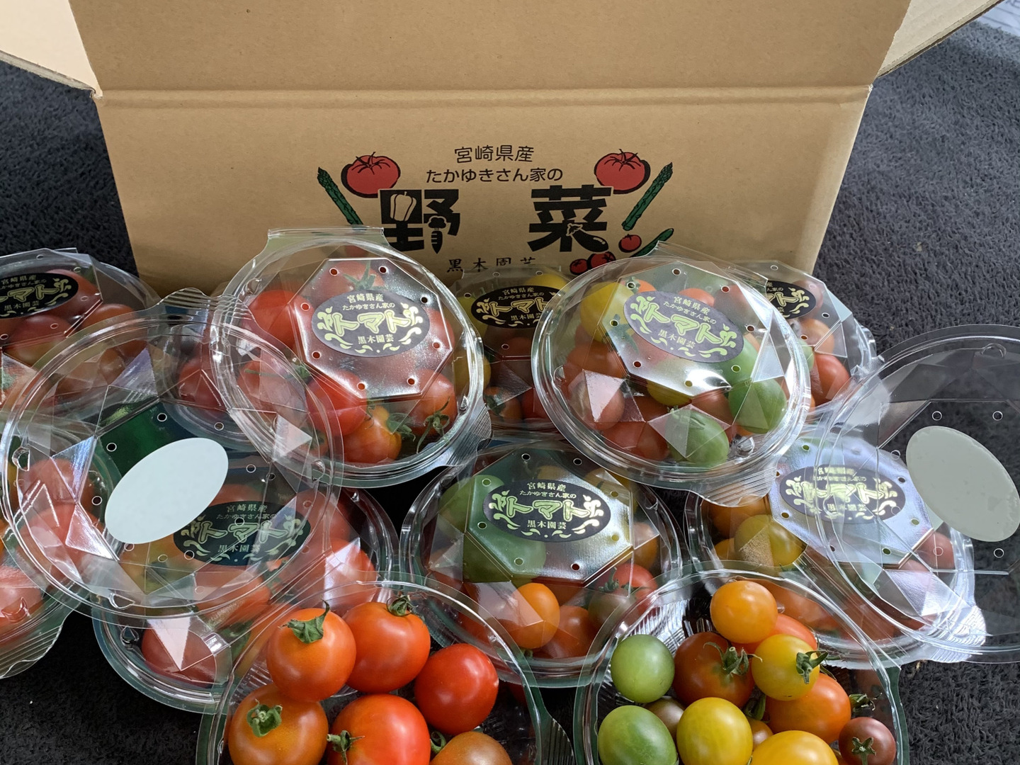 フルティカ、トスカーナバイオレット、オレンジルル、甘ちゃん黄色、114緑、フルーツトマト