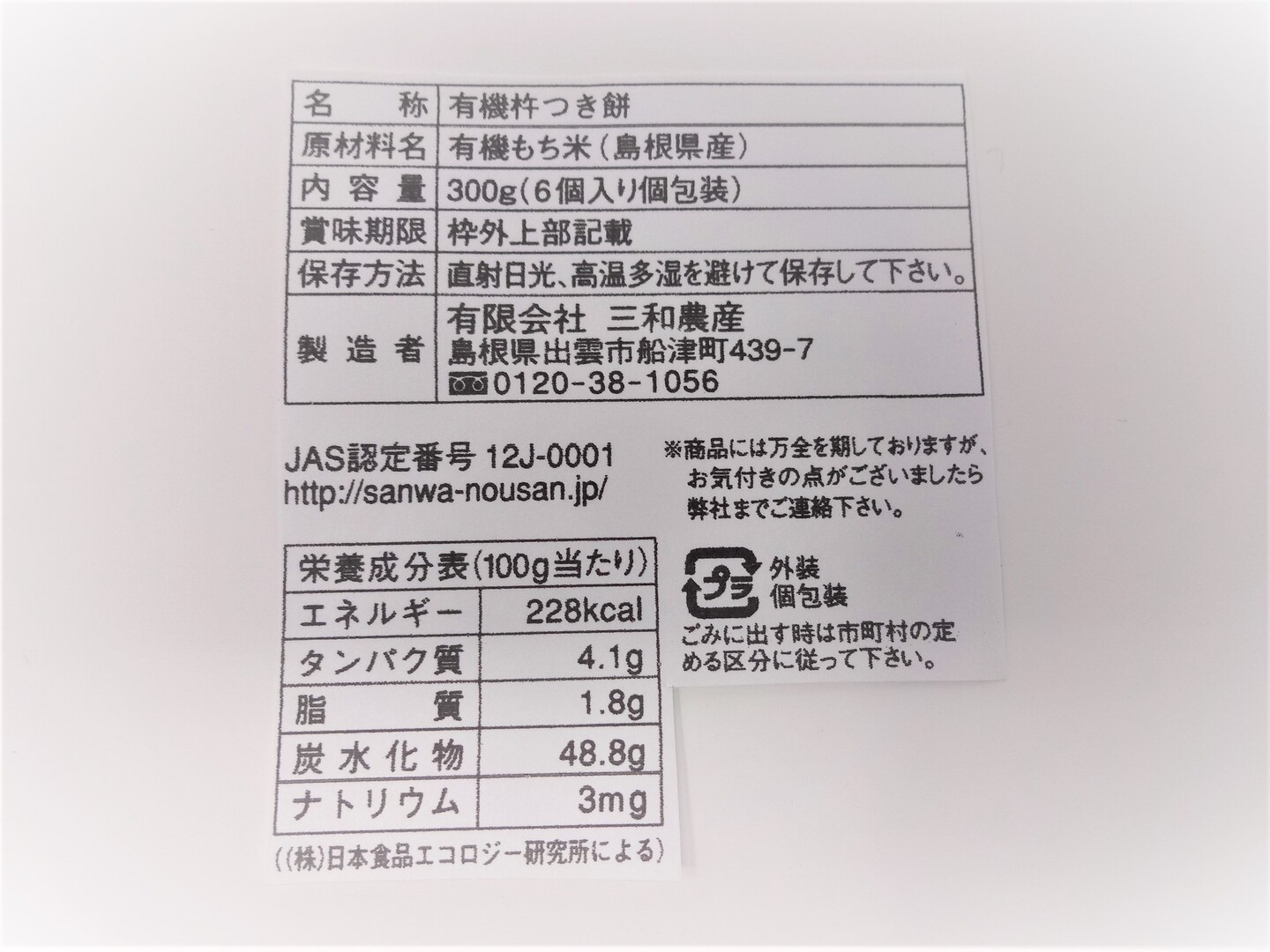商品について あわせ買い対象 同生産者の別の「あわせ買い対象」商品と一緒にご注文いただくと、送料をまとめてお届けできる場合があります。 生産者からのお知らせ スマートレター(送料180円)で送付しますが、食べチョク様でのメール便送料は360円と固定での設定となっており、その分、商品価格を値下げしております。 もっと見る 内容 有機玄米角餅600g(12個) 発送 日本郵便 送料 ¥ 常温便 + ¥ 0 数量1点ごとに送料が発生します。 種別 加工品 産地 島根県 特定原材料 なし 農薬節約栽培 加工品 有機JAS 家庭用 動物性堆肥不使用 ビニール包装 島根県x加工品 商品説明 気軽に玄米食を始めたい方にお勧めです。原料米の生産から、お餅加工まで一貫製造しています。賞味期限まで3か月程度となっているためご注意下さい。わけあり商品(パッケージ無し)のご案内です。噛むほどに香ばしい美味しさ。玄米の栄養をそのままに、手軽に玄米食を始めたい方,マクロビオティックに関心がある方におススメです。うどんに入れて、鍋物に入れて、大根おろしで、様々な美味しさをお楽しみいただけます。原材料の生産から加工まで有機認証を取得して一貫製造しており、安心、安全で美味しいものをお届けできるように努めております。化学的に合成された食品添加物などは使用せずに搗き上げた有機の玄米もちです。杵つきの為コシが強く弾力があり、通常のお餅に比べてみずみずしく甘みがあります。噛めば噛むほど玄米のうま味がするとても美味しいお餅です。玄米は栄養価も高いので日ごろの健康維持にもおすすめです。歯切れもよく、ご年配の方、 小さなお子様にも安心してお召し上がりいただけます。■内容量600g(12個)■原材料名島根県産有機玄米■保存方法お届け後冷蔵庫にて保存してください。なるべく早めにお召し上がりください。■おもな原産地島根県出雲市■賞味期限2カ月 もっと見る この商品のことをお友達にもシェアしませんか ポスト シェア