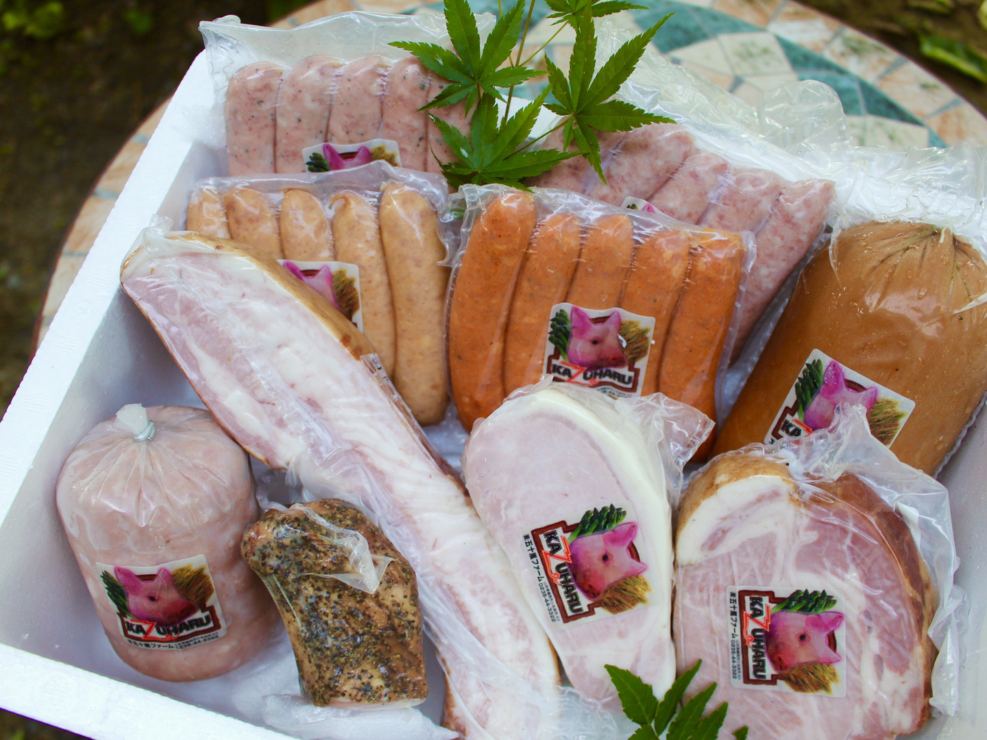 ウインナー4種(5本180g×4)、ロースハム(280g)、プレスハム(300g)、ショルダーベーコン(200g)、バラブロックベーコン(360g)、ボロニアソーセージ(500g)、ヒレハムペッパーブロック(110g)