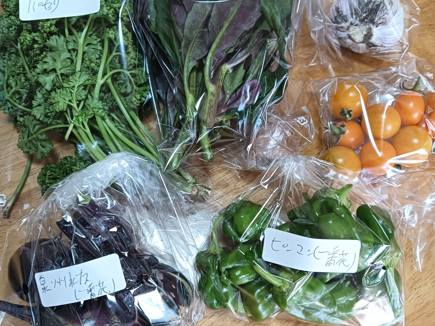 商品について あわせ買い対象 同生産者の別の「あわせ買い対象」商品と一緒にご注文いただくと、送料をまとめてお届けできる場合があります。 生産者からのお知らせ 近年問題となっている、流通のパンクにより、予定日に届かないというような事態もあるかもしれません。どうか広い心で対応していただけたらと思います。その2 天候不順が発送前日から発送日に及ぶ場合、発送日の変更をお願いする場合があります。(特に梅雨時期) もっと見る 内容 10品目程度 重量2001g〜 重量・容量 約2kg 発送 ヤマト運輸(食べチョク特別送料) 送料 ¥ クール便(冷蔵) + ¥ 330 数量1点ごとに送料が発生します。 種別 野菜セット 産地 愛知県 農薬化学肥料不使用 野菜セット 家庭用 動物性堆肥不使用 ビニール包装 紙包装 愛知県x野菜セット 商品説明 写真はマイクロソフトデザイナーというアプリで、現在私が栽培している野菜を入力して生成しました。<栽培のこだわり> 鹿児島から取り寄せた、乳酸菌、微生物、ミネラル豊富な竹を使用しております。複合微生物資材も使用しております。また、保存性の悪化などの理由で、動物性堆肥や肥料は使用しておりません。内訳ミニトマト300g 糖度8.5ナス (2から3個入り)(泉州水ナスは栽培しておりません)種なしピーマン(4から5個入り)ズッキーニじゃがいも 600~700gペコロスつるむらさき しそ 8号袋いっぱいバジル 8号袋いっぱい ローズマリーブルーベリー以上から、9品目程度収穫可能な野菜しそバジルミニトマトナスピーマンつるむらさきズッキーニの花ズッキーニじゃがいも 600gローズマリーブルーベリーミニトマトなど、糖度のあるものは糖度計で計測しております。珍しい野菜の食べ方は、ご注文いただいた時にお伝えするか、紙に書いて一緒に入れます。内容に不備などがございましたら、返金または再送の対応をさせていただきます。ご注文やコメントに対し、迅速に対応いたします。 もっと見る この商品のことをお友達にもシェアしませんか ポスト シェア