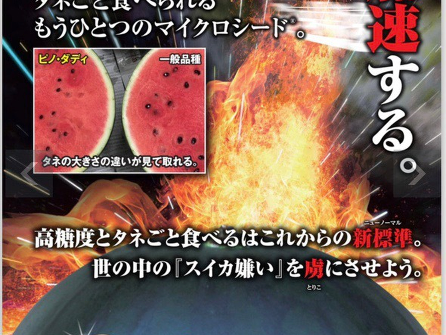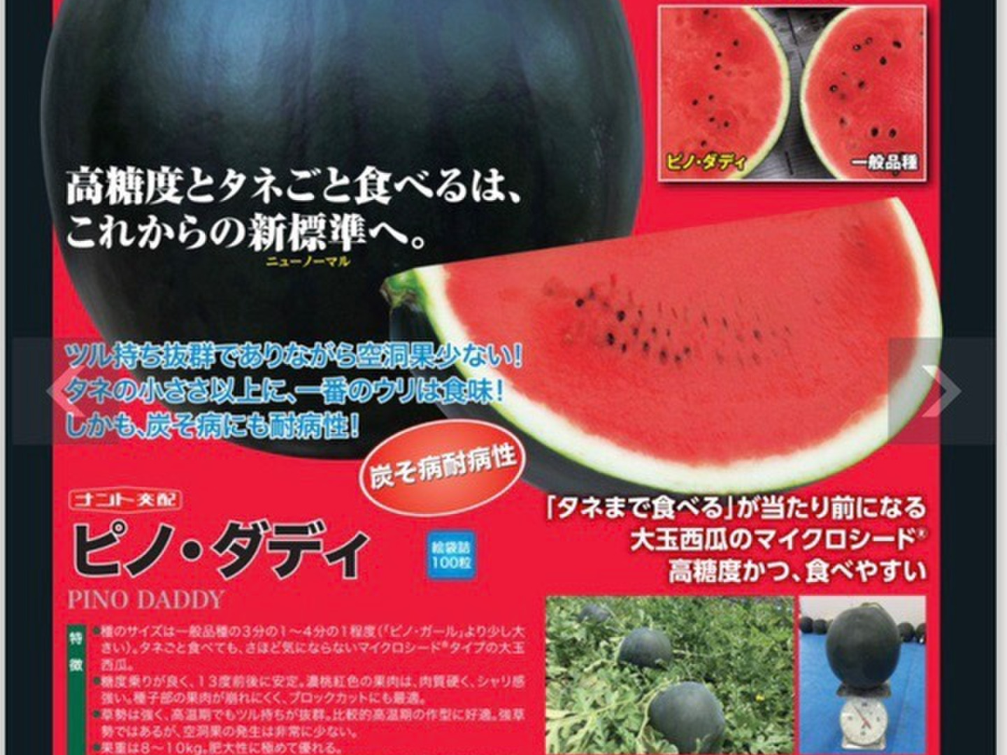 赤肉で種のサイズが3〜4分の1で、種ごとカリカリ食べられるます