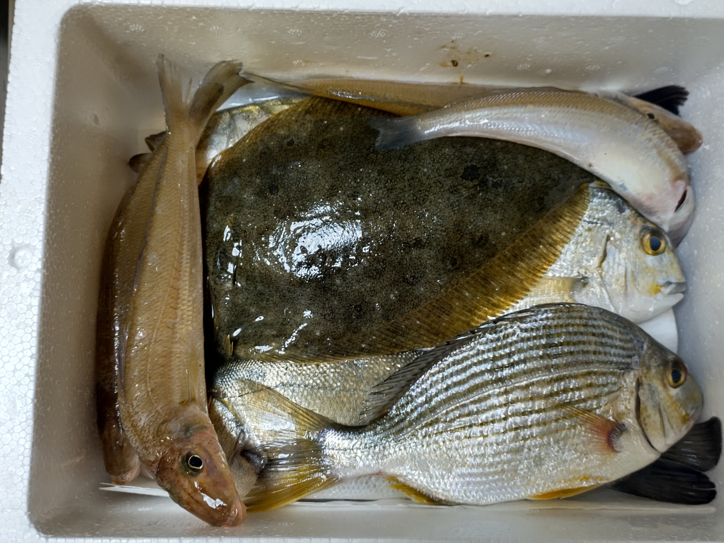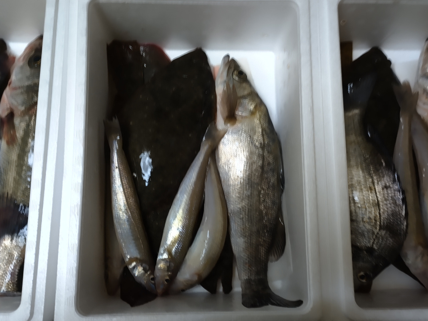 季節により異なりますが、コノシロ、チヌ、ヒラメ、エビ、カレイ、グチ、コチ、タチウオ、キス、手長タコ、コウイカ、カニなど、一年を通して、色んな魚が捕れています❗