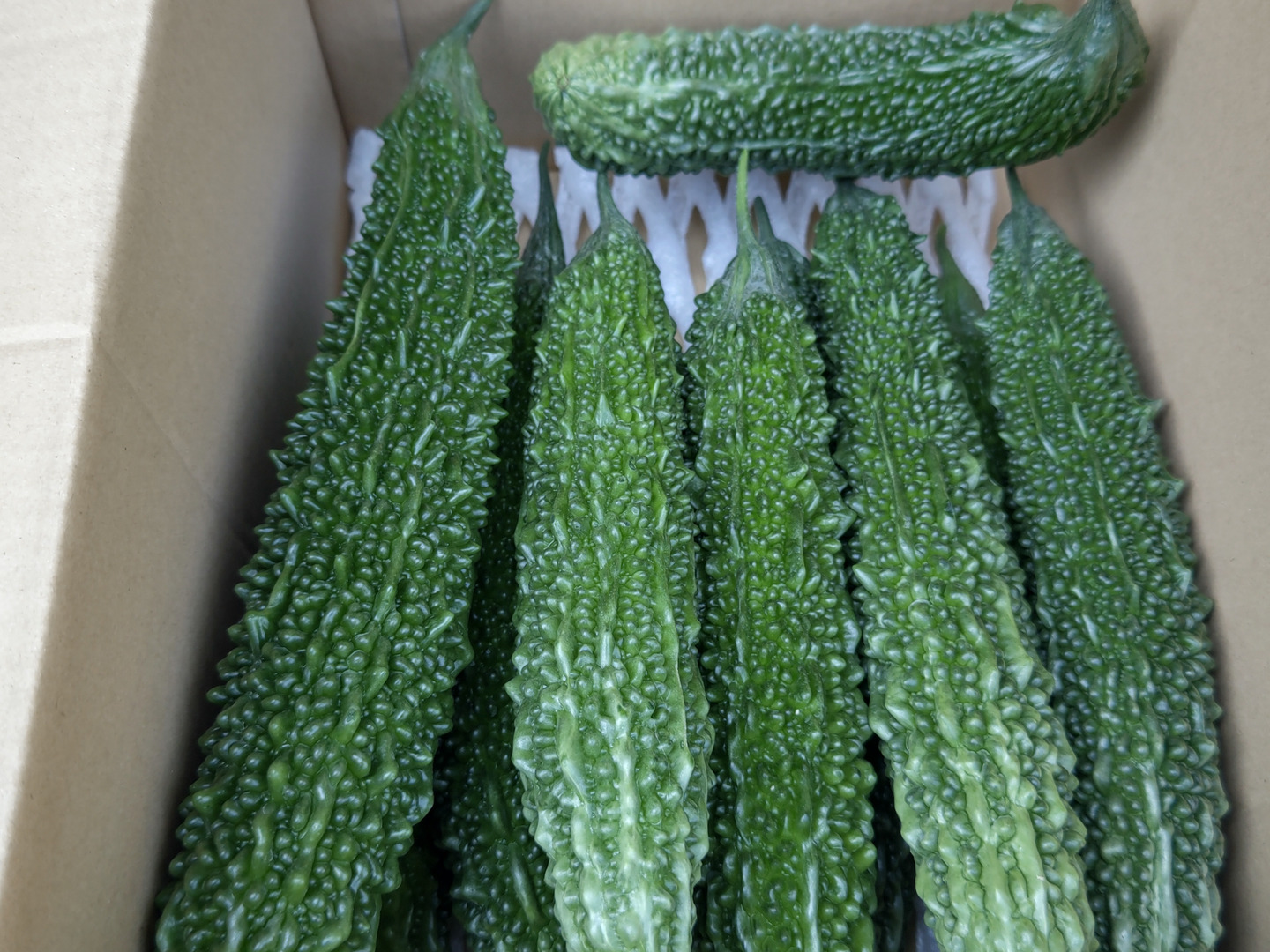 ゴーヤー総合計3キロ(200g〜390g程度を約10~13本)+めちゃ曲がりゴーヤー1本追加