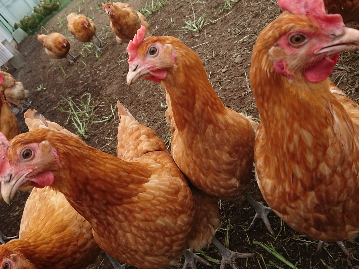 平飼いにこだわり、元気いっぱいに育った鶏たちです。