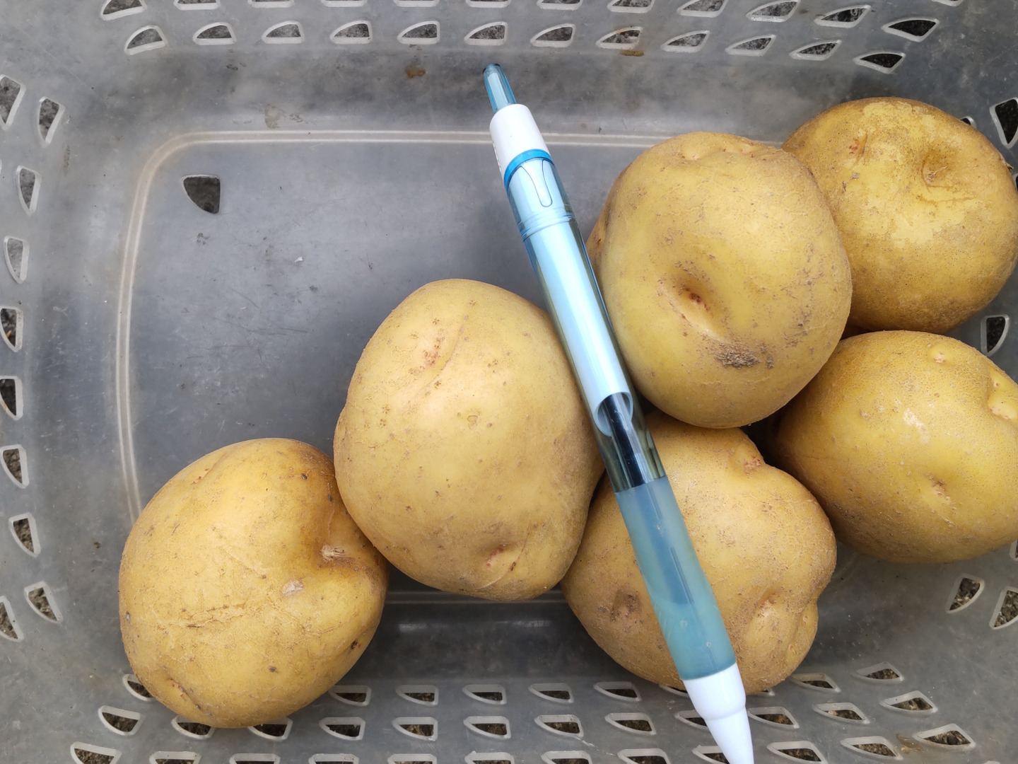 三方原台地のキメ細かな赤土で育ったホクホクしたジャガイモのミニサイズです。炭素循環農法(たんじゅん農法)で栽培した「きたあかり」という品種のジャガイモです。ホクホクしていますが男爵イモよりは少しシットリ寄りです。この時期は素揚げやポテトサラダなどに最適です。
