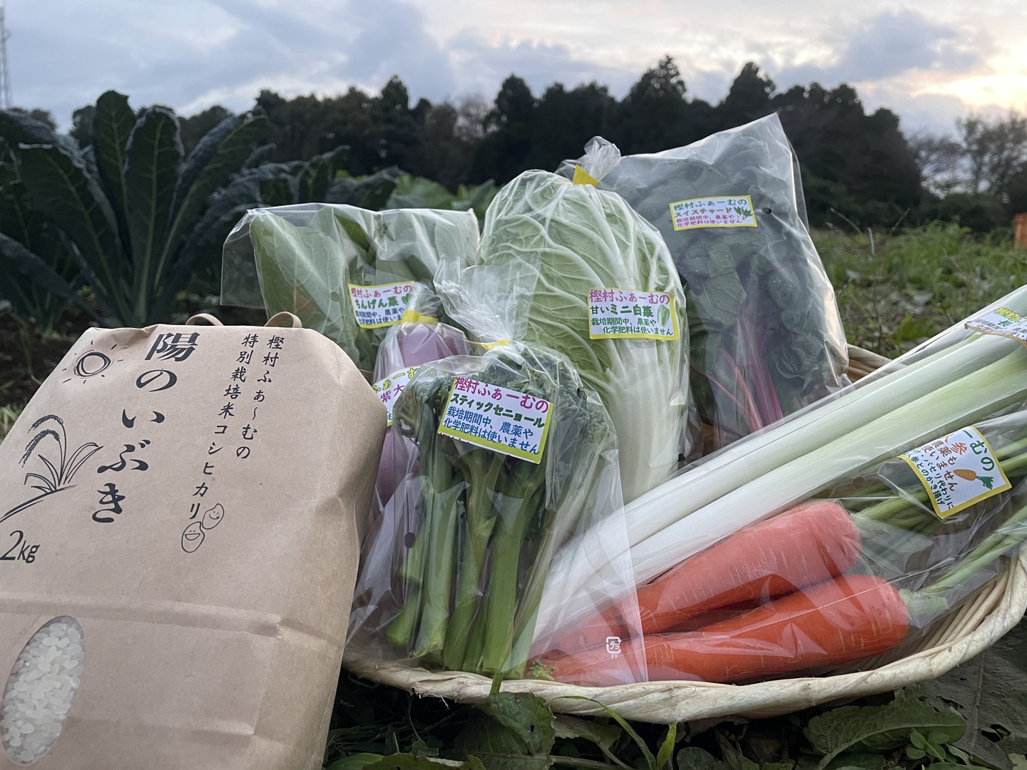 - お米に野菜にと一度に樫村ふぁーむを味わえるお得なセット