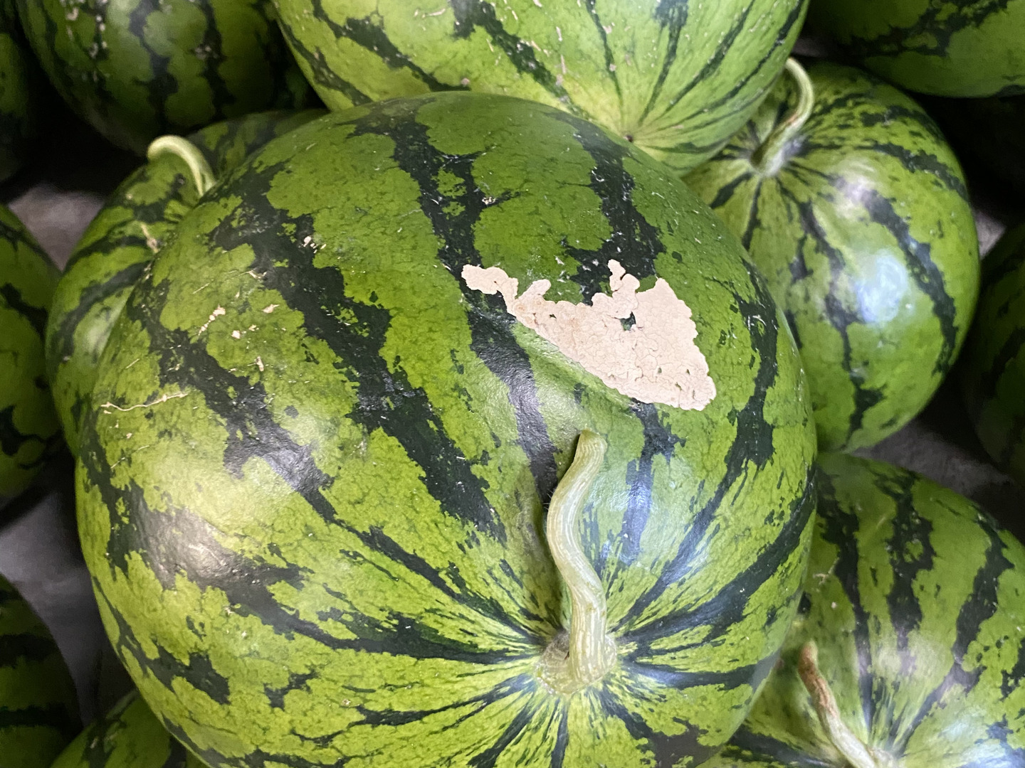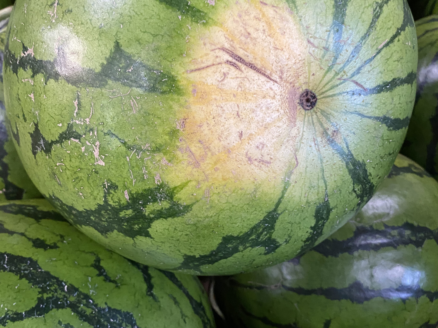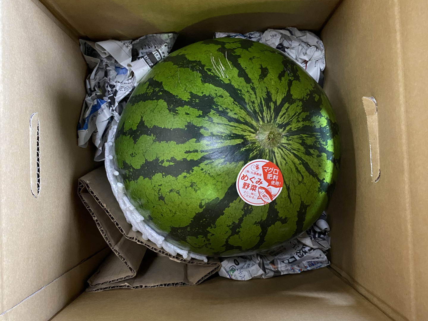 我が家のスイカは陽に当たらなかったことによって、黄色になっていたり、表面に傷が付いていたり、形が不恰好な物もございますのでご了承ください。