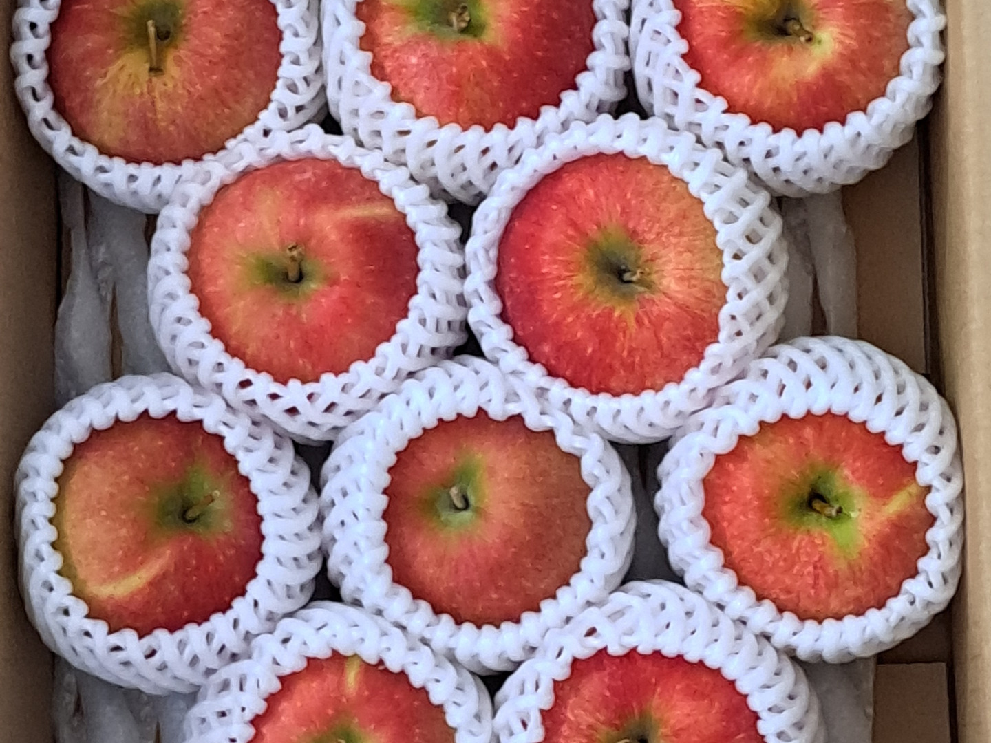 大自然の風雨の中で実る果実ですので、個性があり、着色ムラ、表皮で留まっているスレや変形もございます。家族経営の小さな農家ですので、果実内部の状態を過去の経験で推測しながら一玉一玉、手作業で箱詰めしております。五感をフル稼働して最善は尽くしますが、内部障害、目落としで小さな傷も入ってしまうかもしれません。ご容赦下さい。