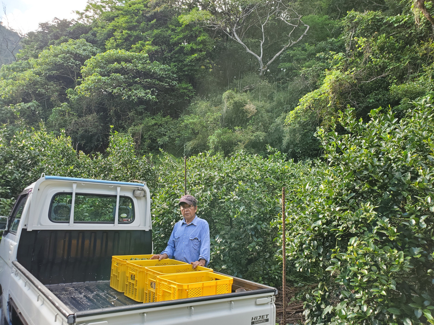 沖縄の太陽の光をいっぱい浴びて、シークヮーサーの爽やかな香りただよう嘉津宇岳の麓にあります。昼夜の寒暖差が大きく、朝霧が降り、シークヮーサーを栽培するのに最適な環境です。