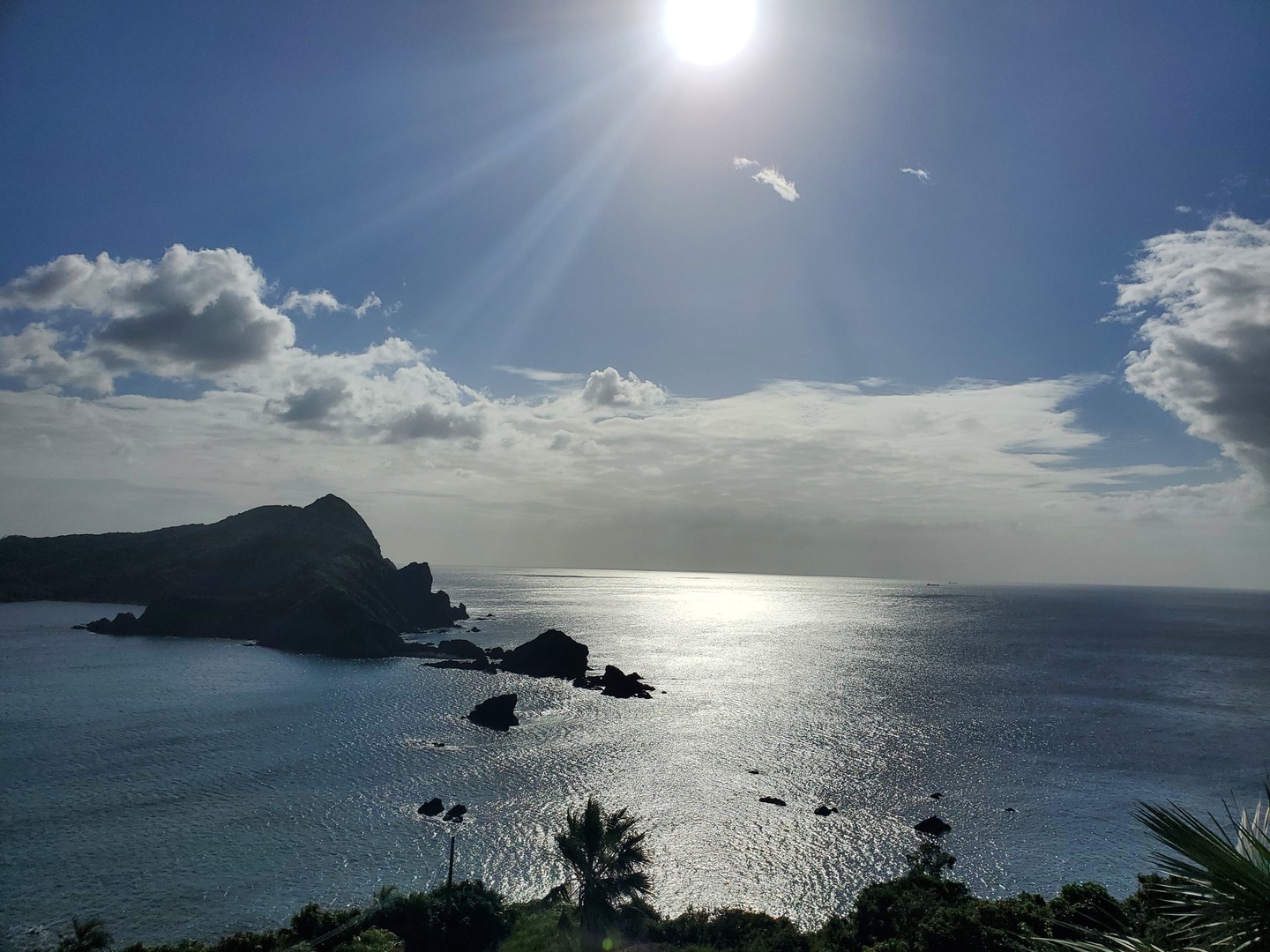 太平洋に沈む夕日を眺めることが素潜り漁師の至福の時です。