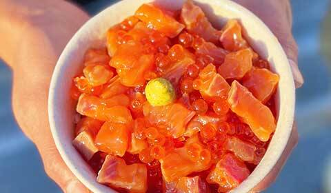 - いくら醤油漬け(120g×2)/ 新巻鮭切り身(100g×4)/ 鮭といくらの知床漬け(250g×1)/ 鮭カマ一夜干し(2切れ×1)