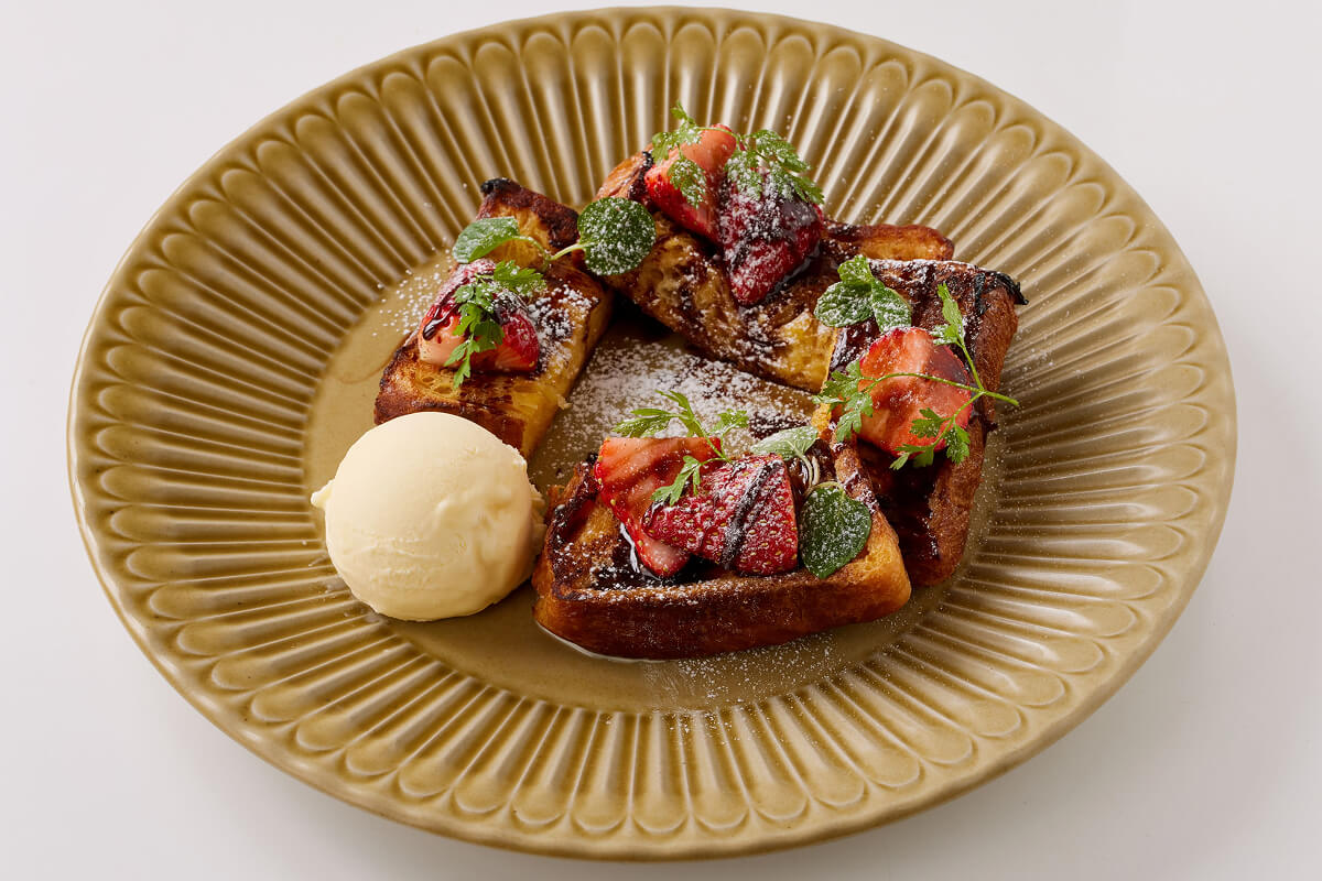 旬の埼玉県産のいちごをふんだんに使用。 たっぷりバターのデニッシュフレンチトーストと新鮮なイチゴの甘味とバニラアイスの組み合わせが楽しめる一皿です。