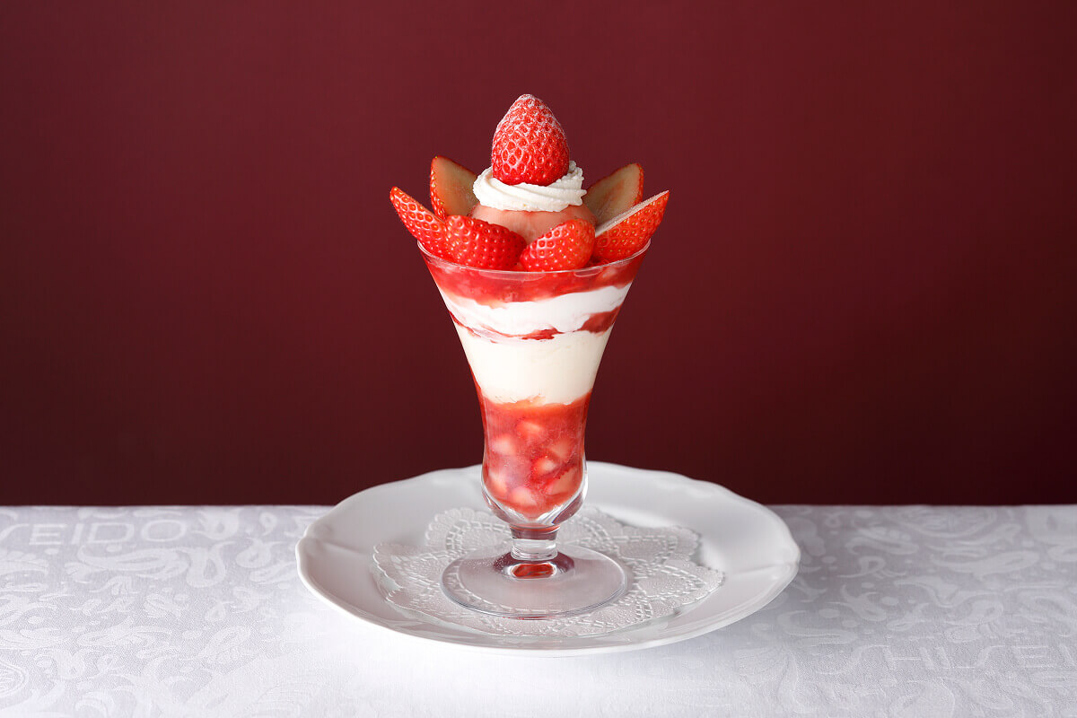 埼玉県が誇るプレミアム苺「あまりん」を贅沢に使ったミニサイズのパフェ。
