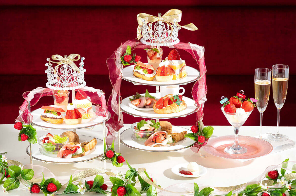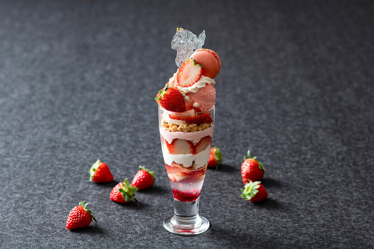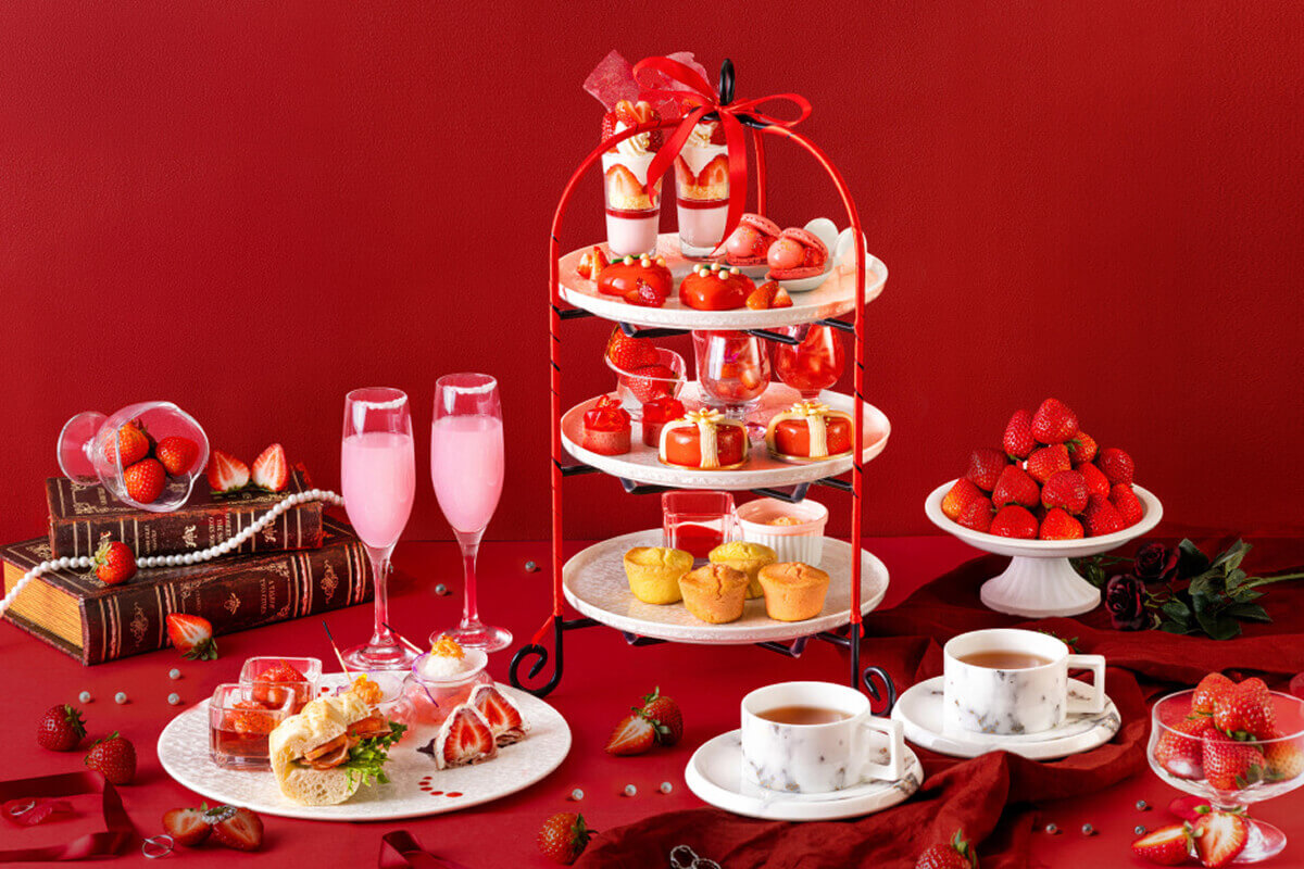 「プレミアムいちご県」に認定された埼玉県が誇るオリジナルいちご“あまりん”と“べにたま”を使用し、真っ赤なジュエリーボックスとして華やかに表現したストロベリーアフタヌーンティーセット。ショートケーキ仕立ての層が美しい「あまりんとべにたまのストロベリーパフェ」や、いちごを模した可愛らしいフォルムをお楽しみいただける「あまりんのブランマンジェ」など、“あまりん”と“べにたま”の一粒一粒が織りなす至福のひとときをお楽しみください。