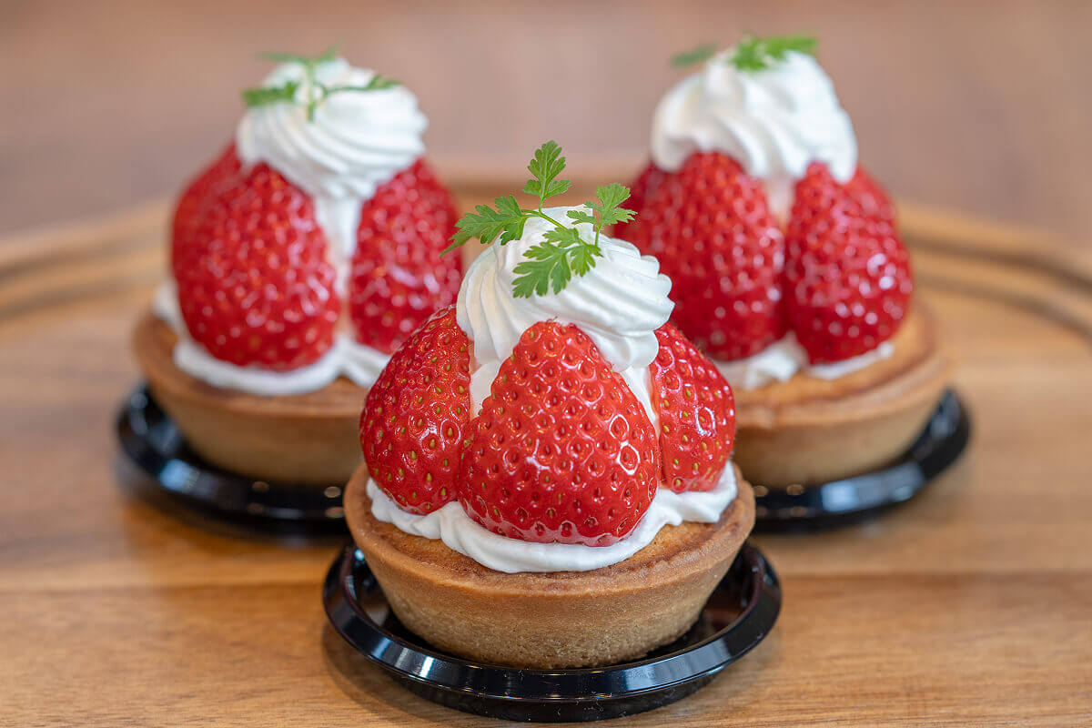 埼玉県オリジナルいちご品種「あまりん」を贅沢に味わう、春らしいタルト。生クリームとヨーグルトを合わせた軽やかなヨーグルトクリームを、香ばしいタルト生地に絞りました。コクがありながらも後味はさっぱりと、甘みの強い「あまりん」との相性は格別です。トッピングには瑞々しい「あまりん」をあしらい、さらに果実本来の美味しさをそのまま楽しんでいただけるよう、丸ごと一粒を添えて仕上げました。甘さと爽やかさのバランスにこだわった、からだにも嬉しいヘルシースイーツです。