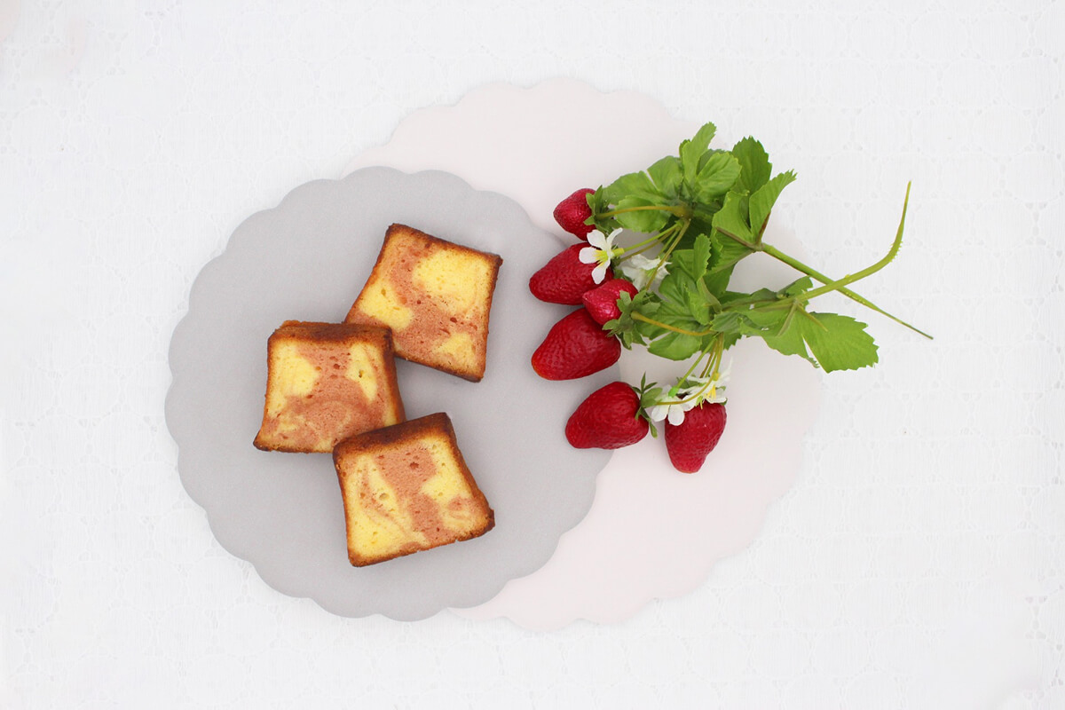 埼玉県産のあまりんのピューレを使用し、イチゴの香りが口の中でふわっと香るパウンドケーキ。プレーンといちごのマーブル生地で見た目も華やかに仕上げました。