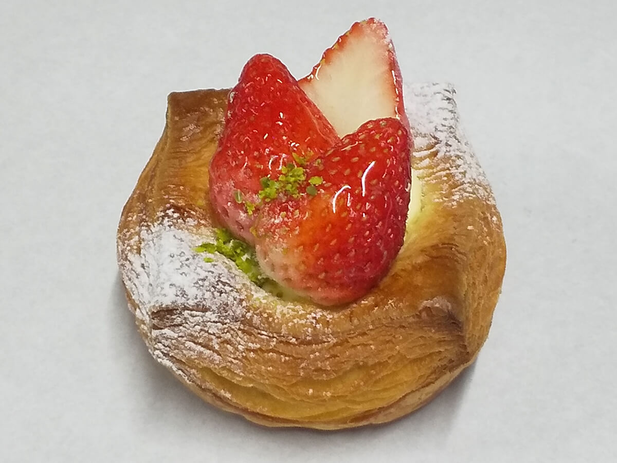 2種のクリームを絞り、埼玉県産いちご「あまりん」をのせた季節のデニッシュです。